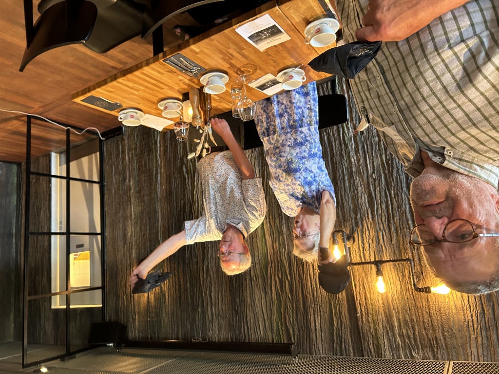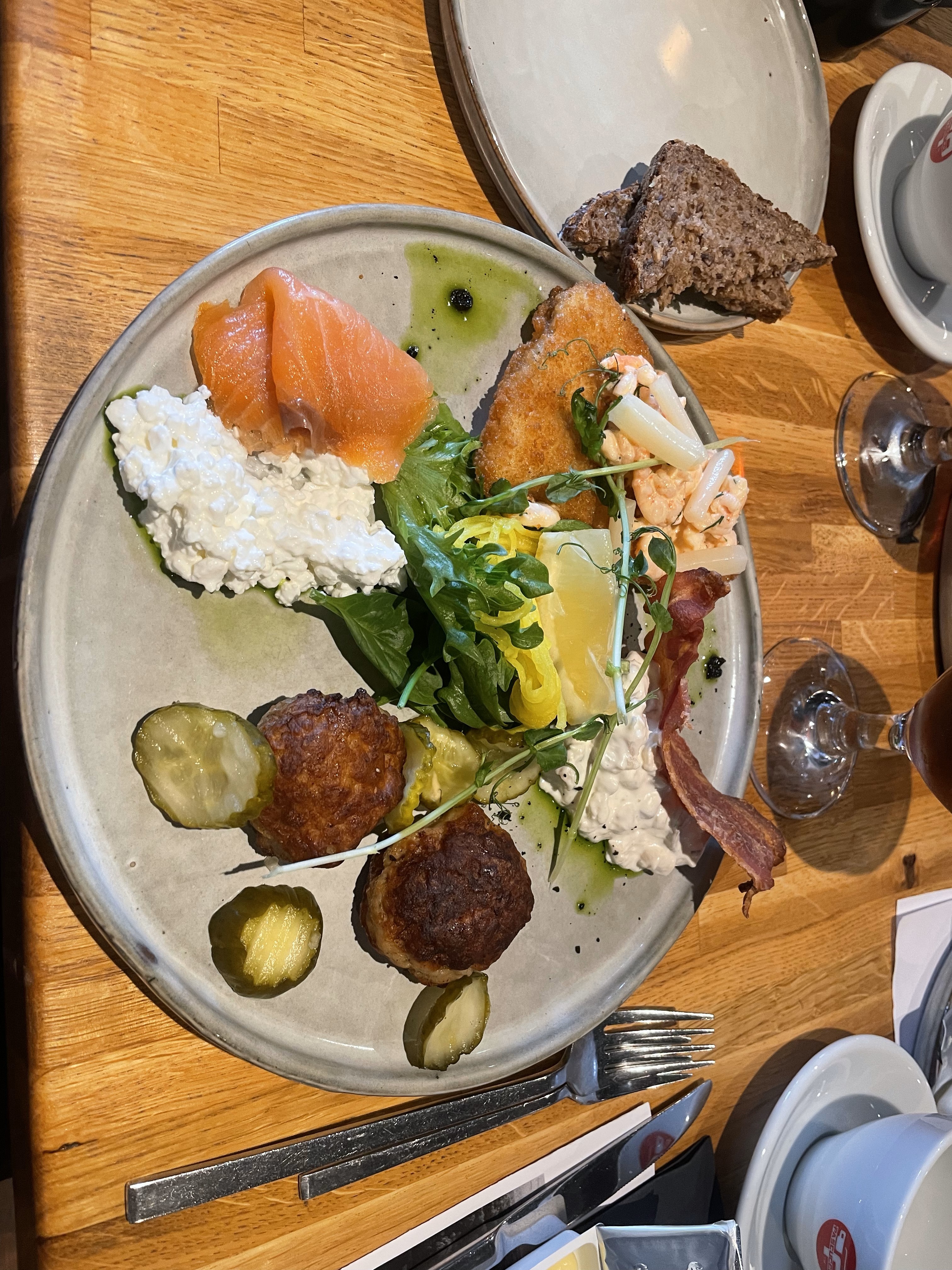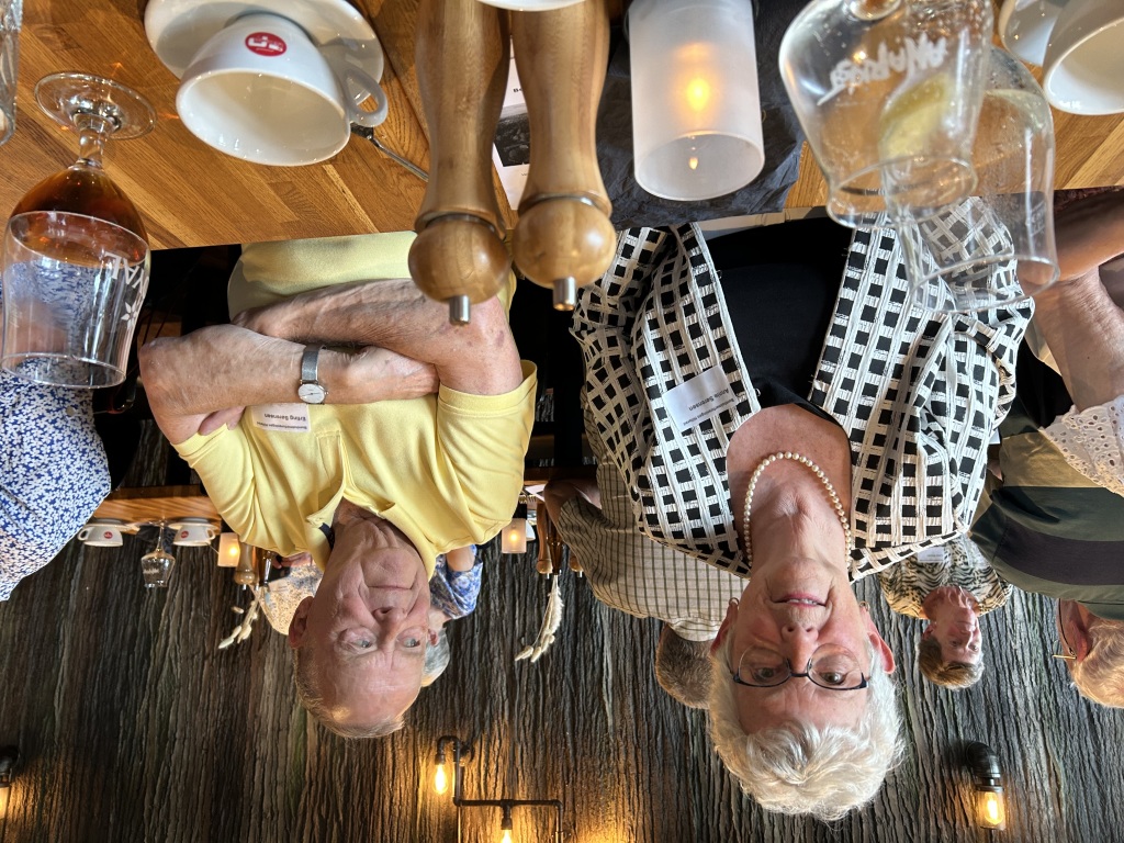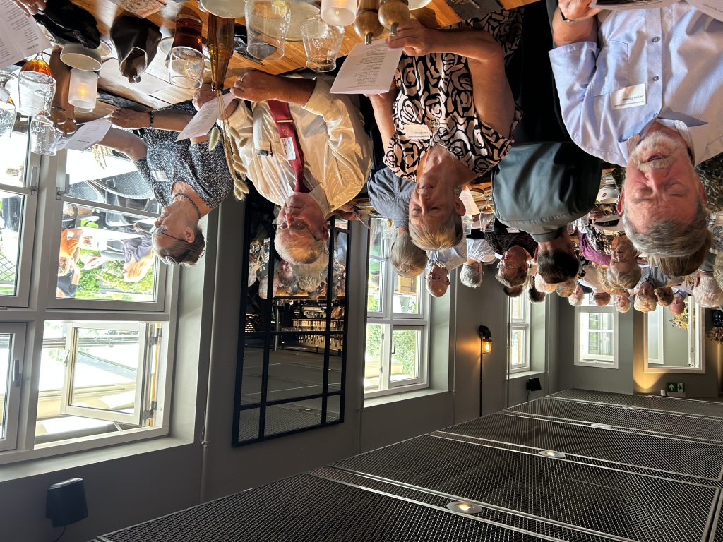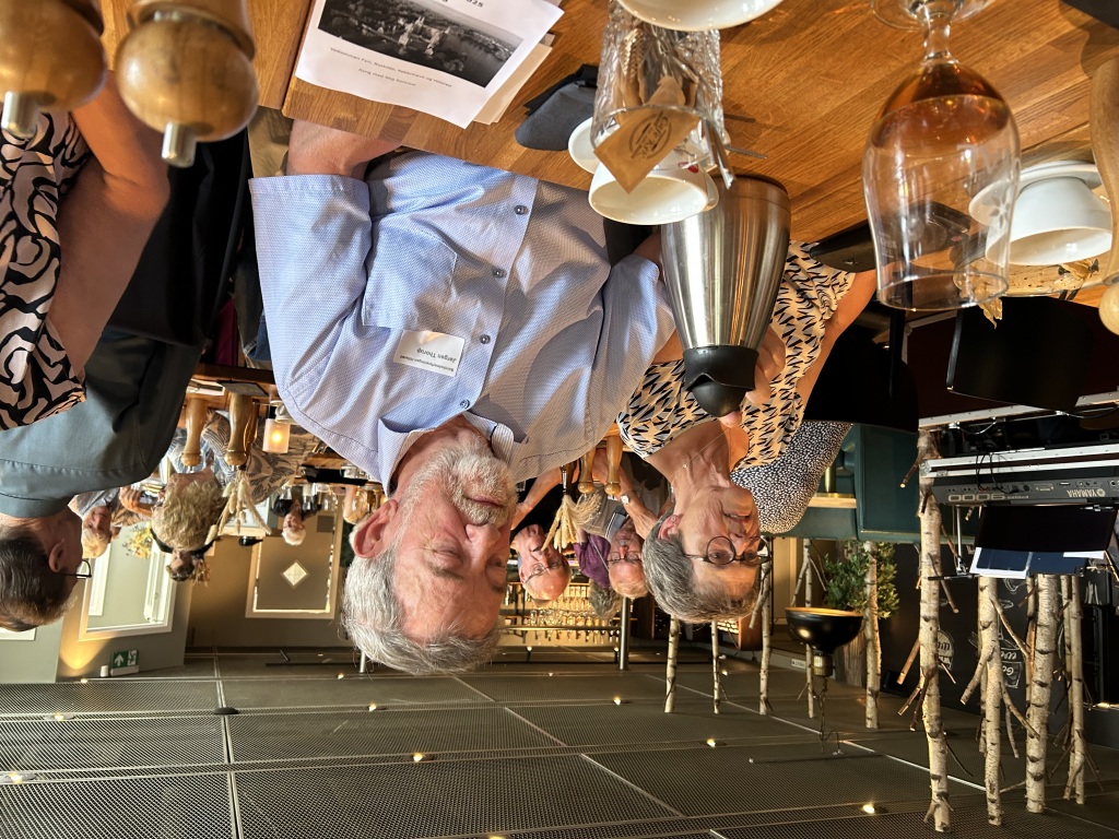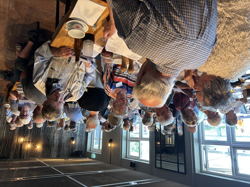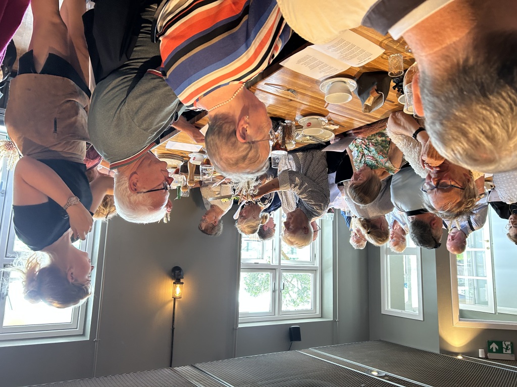 Efter rundvisningen gik vi allesammen en lille tur langs med slotssøen til restaurant KIK hvor vi fik en platte mens snakken gik livligt omkring bordene. Stig Sommer spillede og sørgede for fællessang på vores eget sprog. Han kan løfte enhver begivenhed til en fest.